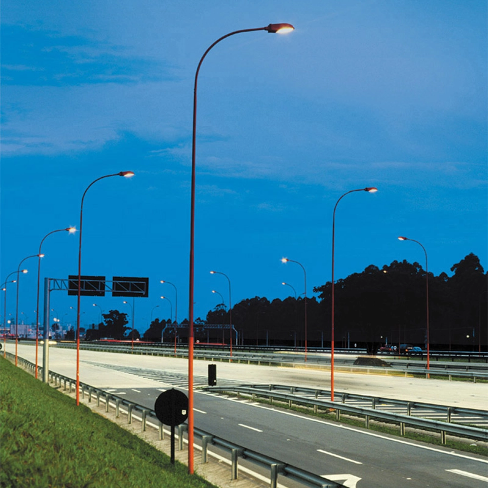 Poste reto flangeado provido de braço simples reto